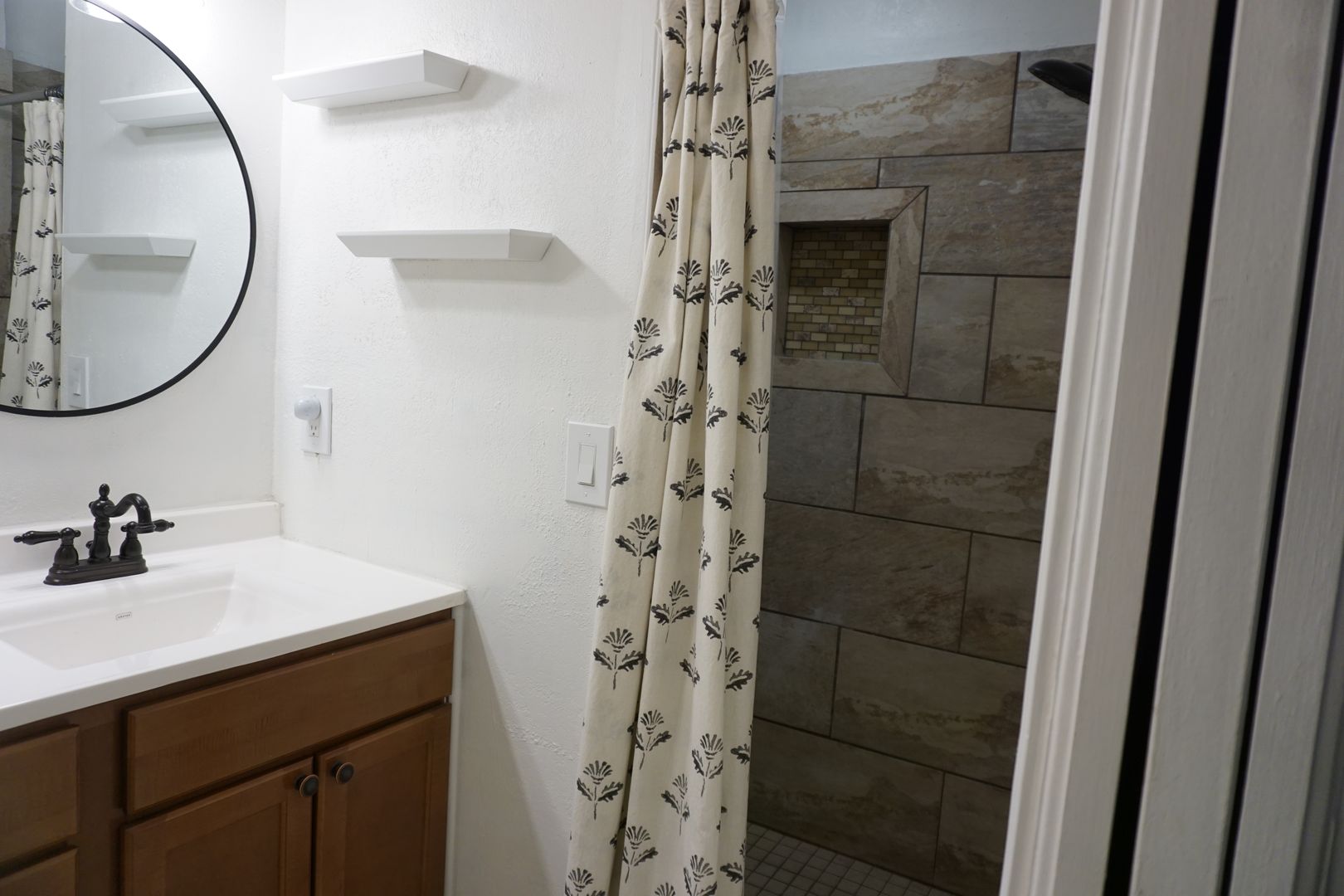 •Master bathroom room has a double vanity sink and walk in shower