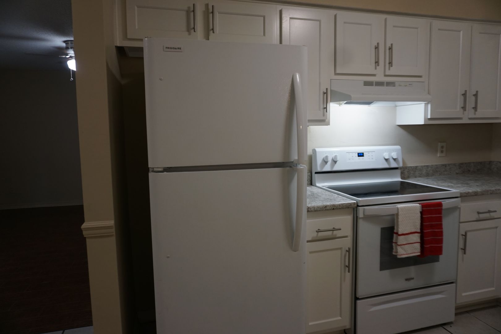 •Kitchen includes refrigerator, stove and dishwasher.